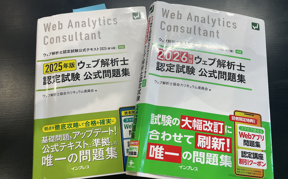 この3点を用意しました。ウェブ解析士 認定試験公式テキスト2026(第17版)は書籍版もありますが、個人的には調べるときにweb版の方が検索機能で探せるので勉強しやすいかなと思います。