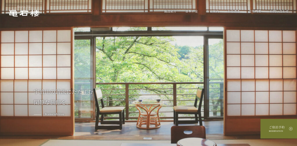 旅館のWEBサイトということもあり、フォントやアニメーション、画像などから上品さを感じることが出来ました。